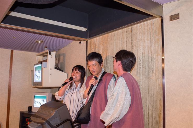 10/9(日)、宴会後はカラオケルームへ。ロイヤル社員たちの「のど自慢大会」の始まりです!