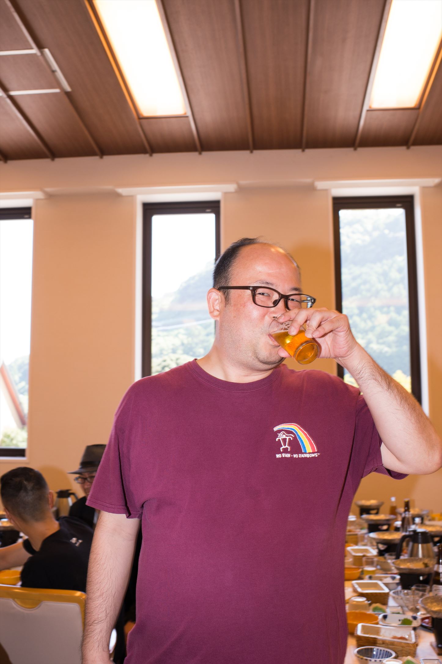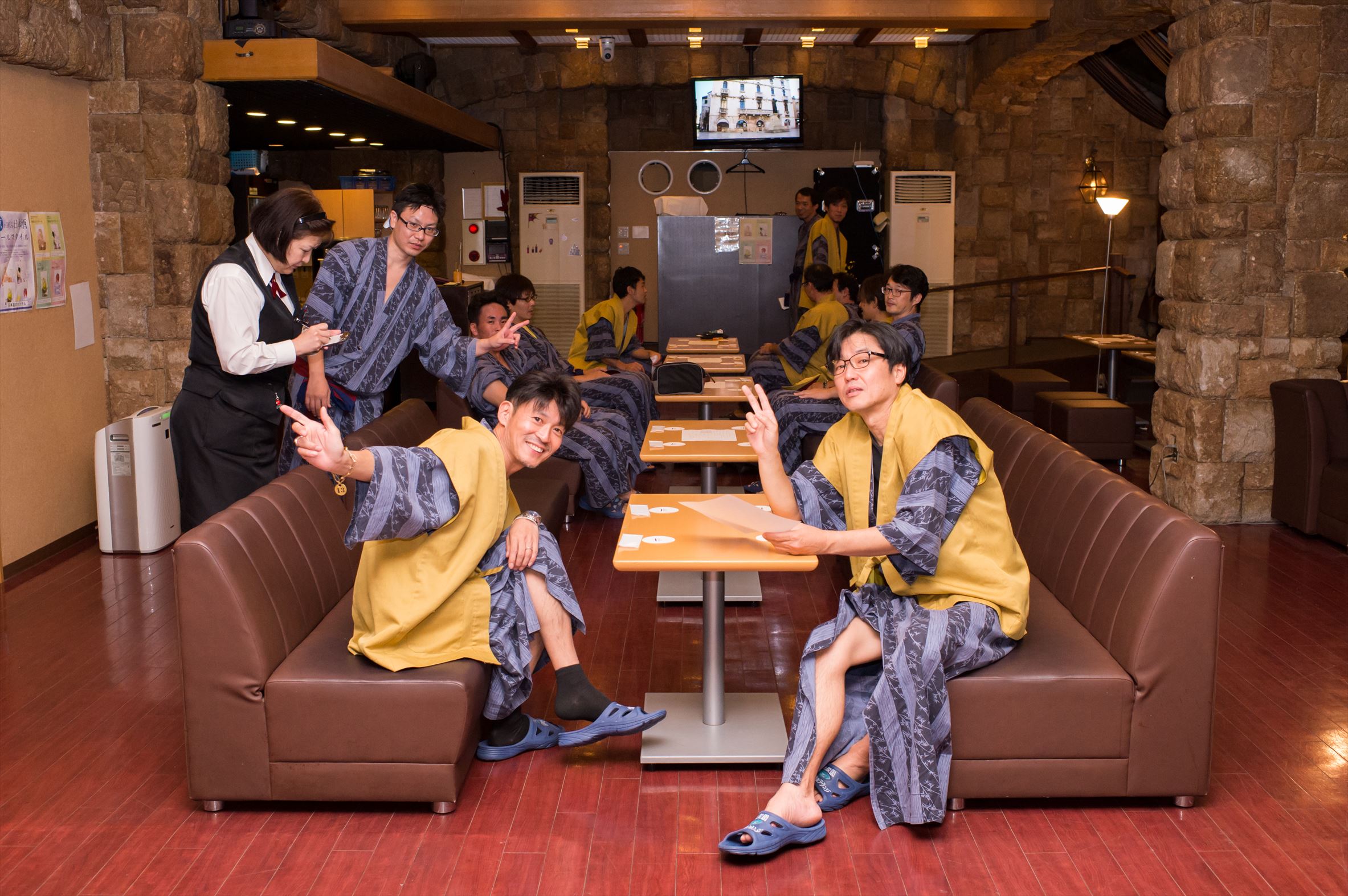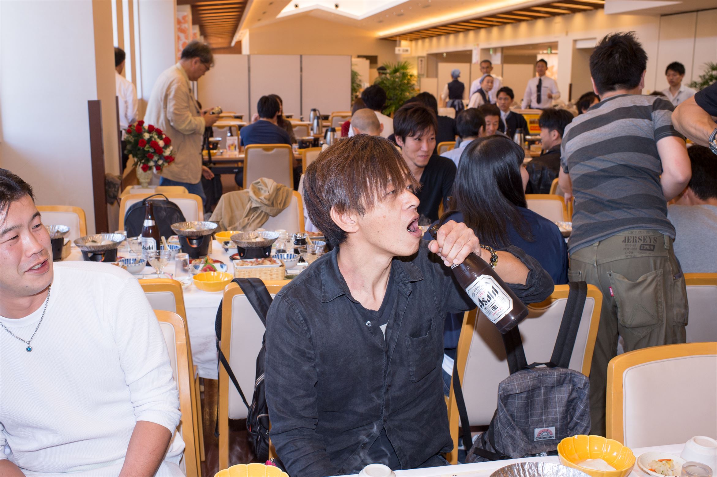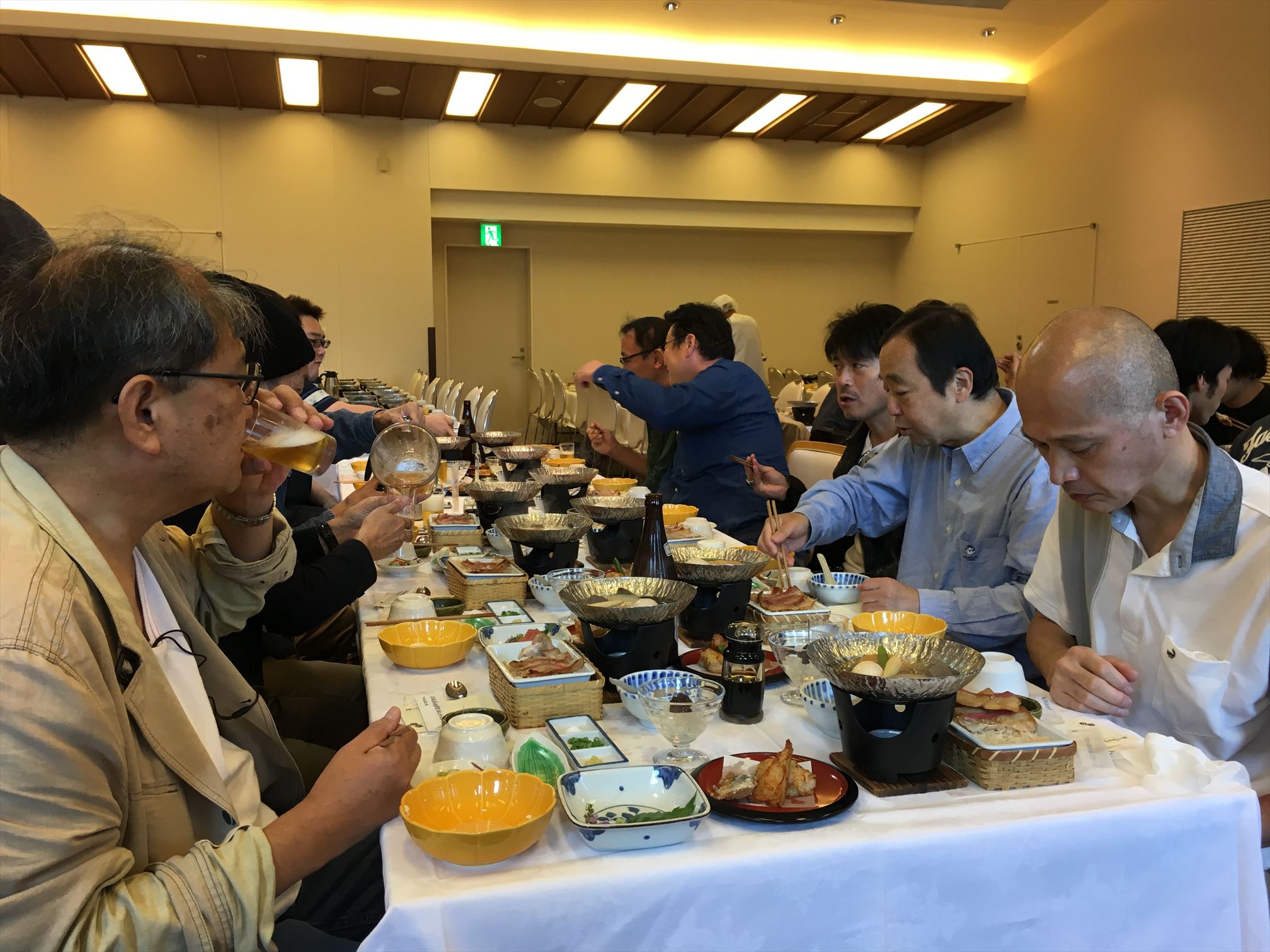 今回のお宿「天成園」にていよいよメーンイベント「宴会」のお時間!若葉会主催の余興で新人とベテランが盛り上げます!恒例の景品も!