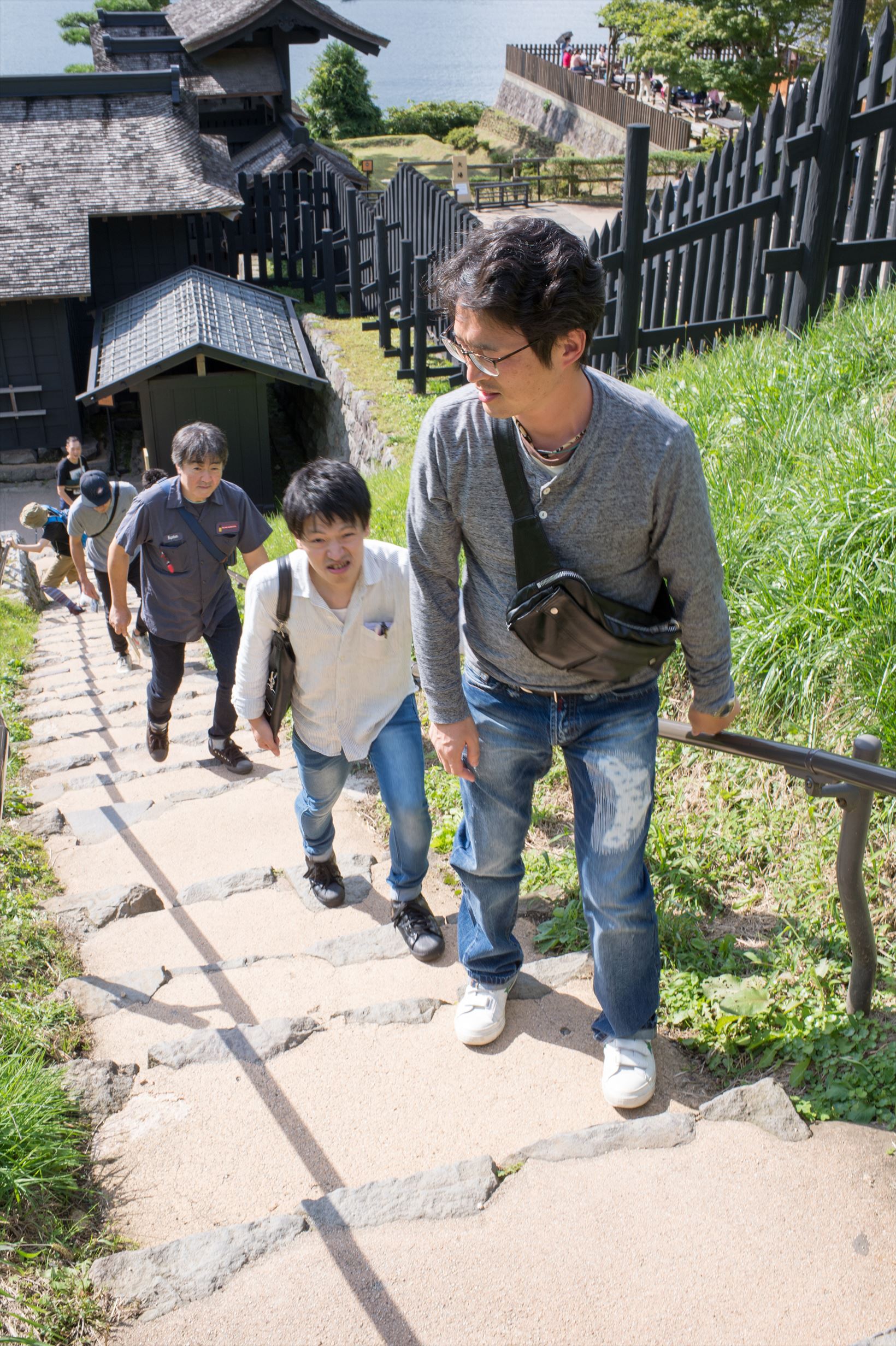 再びバスに揺られて次は江戸時代から残る名所、「箱根関所」。そして、奈良時代に建造されたとされる歴史ある「箱根神社」の観光です。長かった移動時間と酔いと、無限の階段地獄!でオジサンチーム( 笑) はどうやらお疲れモード?